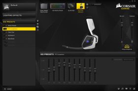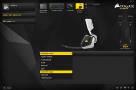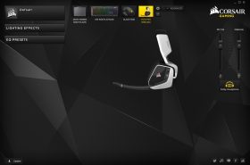 A VOID PRO headset szoftvere a Corsair periféria tulajdonosok körében már jól ismert CUE (Corsair Utility Engine), mely a Corsair perifériák meghajtóprogramját egy szoftverben integrálja. A headset szoftvere nem egy összetett rendszer, hisz ebben az esetben "csak" az RGB világítás és a hangszín állítható. Az RGB-s perifériákhoz hasonlóan lehetőségünk van számos effekt (fix világítás, villogás, RGB átmenet, stb.) beállítására, emellett más Corsair perifériákkal (billentyűzetek, egerek, egérpadok) is összehangolhatjuk a világítást.